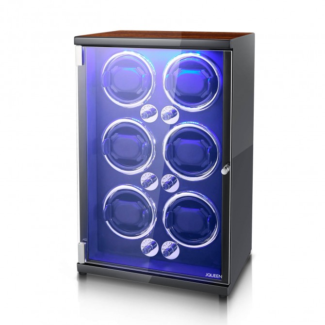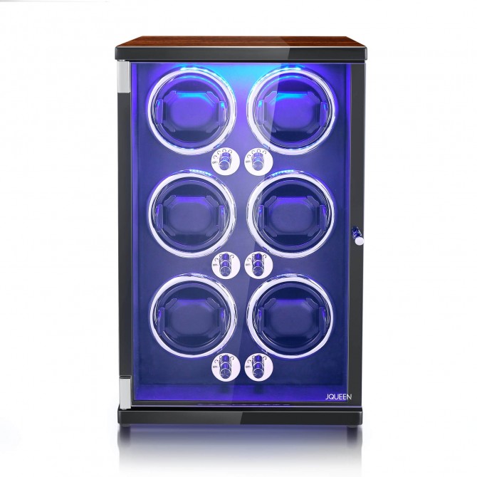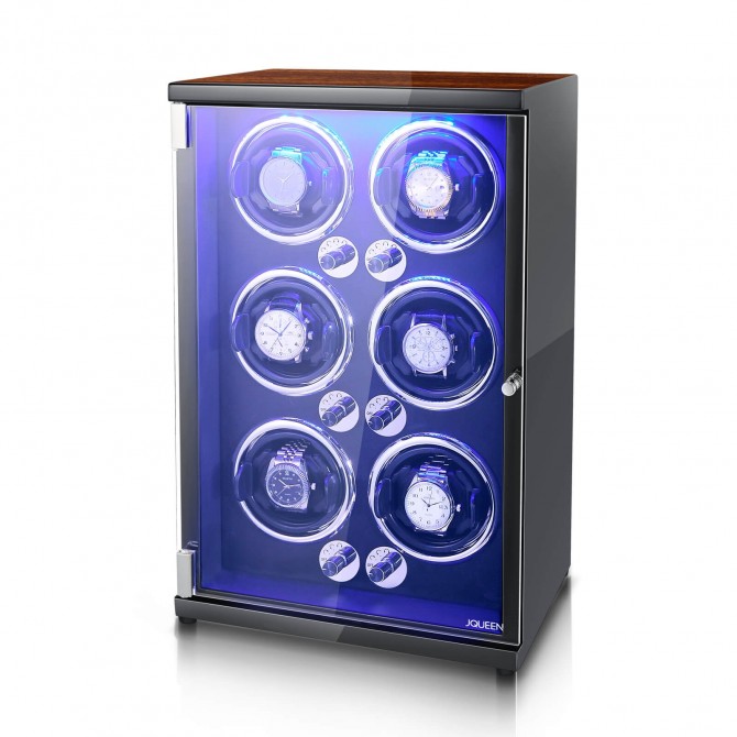 JQUEEN automatic watch winder is driven by a Japanese super silent motor, with noise as low as 5 dB to rotate your watches quietly and safely, with no running noise. The elegant LED light effect makes your watch impressive at any time
