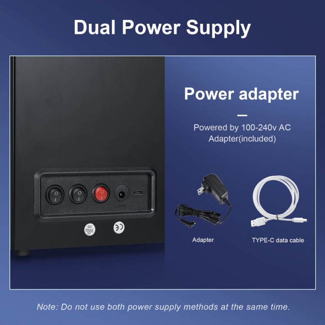 Watch Winder Powered by 100-240V AC Adapter(included) or Type-C data cable(included). Type-C data cable power makes the product more portable and suitable for outdoor travel to provide dynamic energy for other watches. Note: Only one type of power supply can be used when powering the three watch winder.