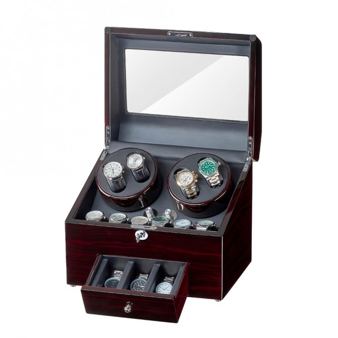 ● Large Capacity—There are 4 winder space and 9 storage space in the watch winder which can fit your needs, and the watch adopts drawer design which is more dustproof.