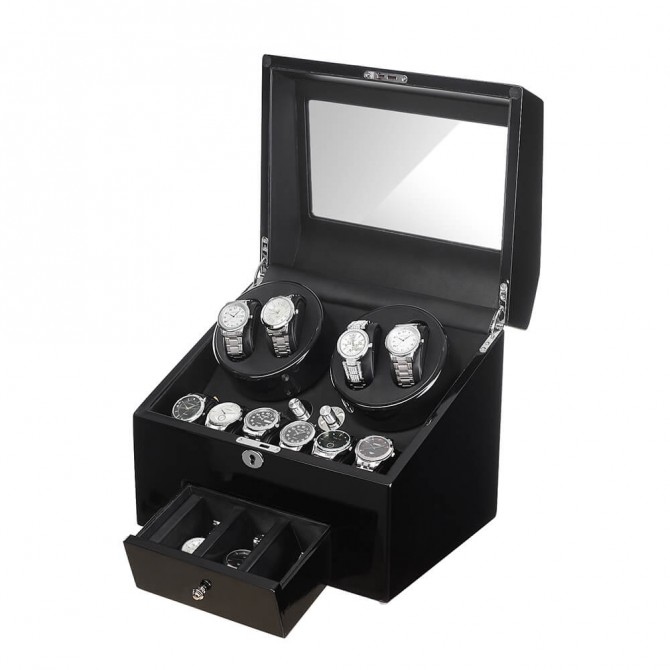 ● Large Capacity—There are 4 winder space and 9 storage space in the watch winder which can fit your needs, and the watch adopts drawer design which is more dustproof.