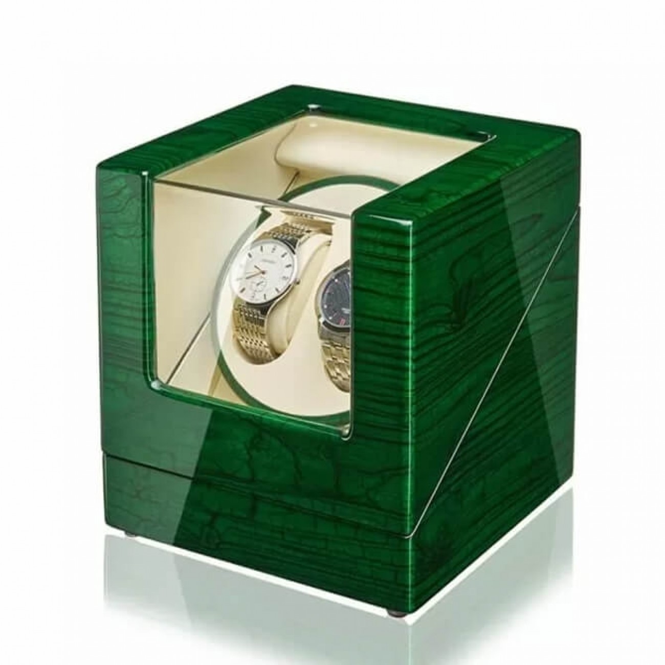 Double Automatic Watch Winder Box with Unique 3 Rotation Modes - Green