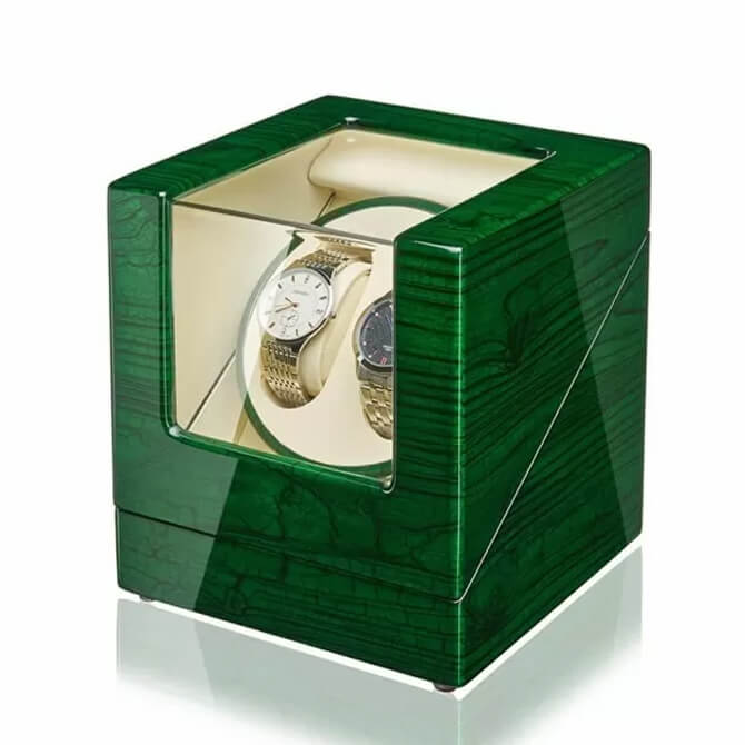 Double Automatic Watch Winder Box with Unique 3 Rotation Modes - Green
