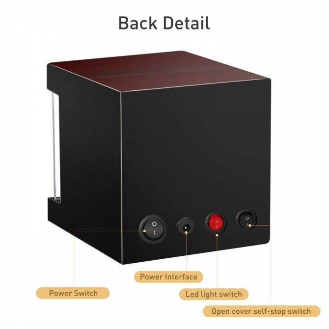 ● LED Light——There is a LED light switch at the back of the watch winder which can control the light. When you turn on the light you can see your watch more clearly at night.