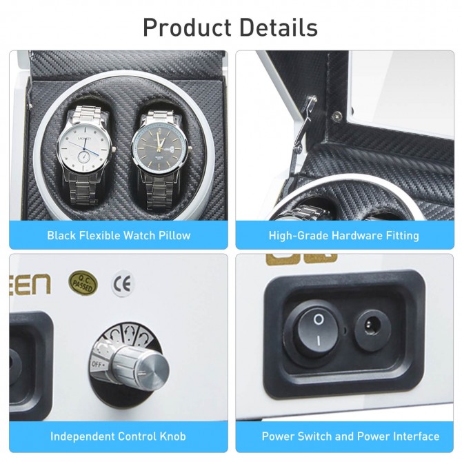 Package Includes: 1*watch winder, 1* adapter, 1* manual, 1* a piece of cloth for wiping