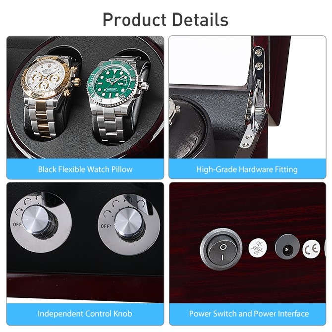 - Watch winder motor have 3 direction settings (clockwise, counter-clockwise and alternating) and multiple Turns Per Day settings.