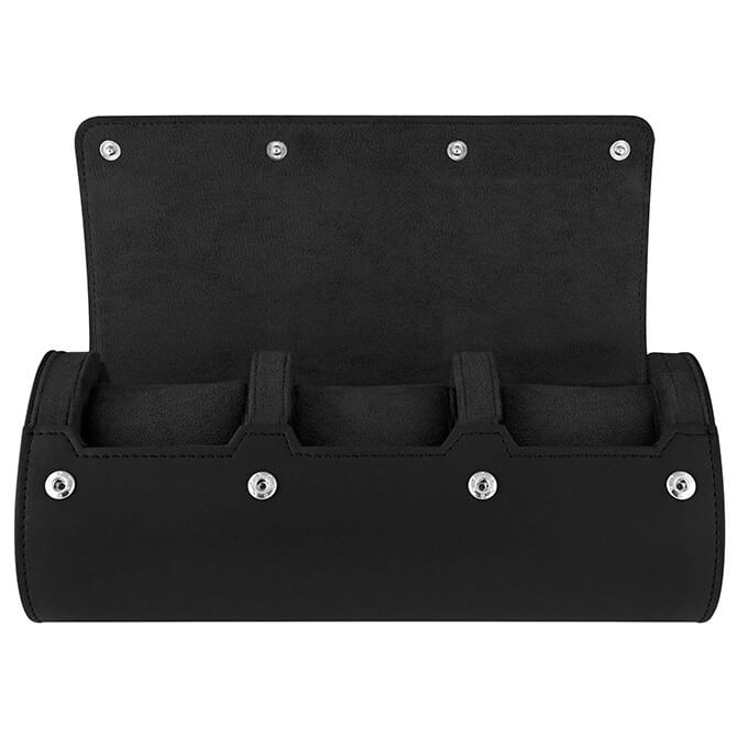 Jqueen Black Leather Watch Roll Travel Case For 3 Watches