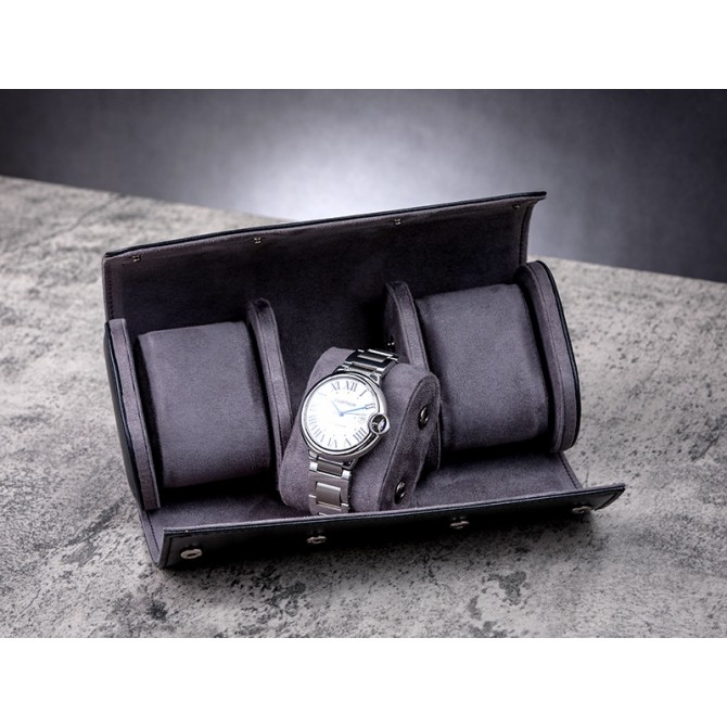 Jqueen Grey Leather Watch Roll For 3 Watches