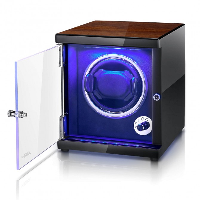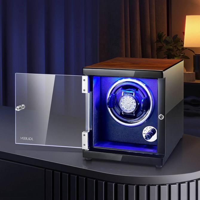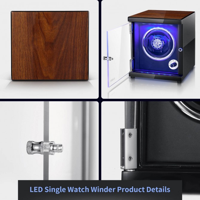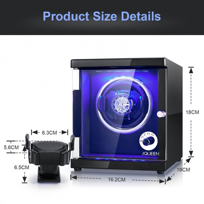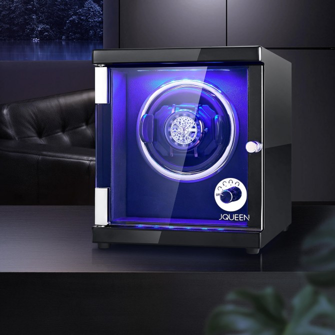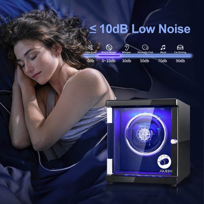 JQUEEN automatic watch winder is driven by a Japanese super silent motor, with noise as low as 5 dB to rotate your watches quietly and safely, with no running noise. The elegant LED light effect makes your watch impressive at any time