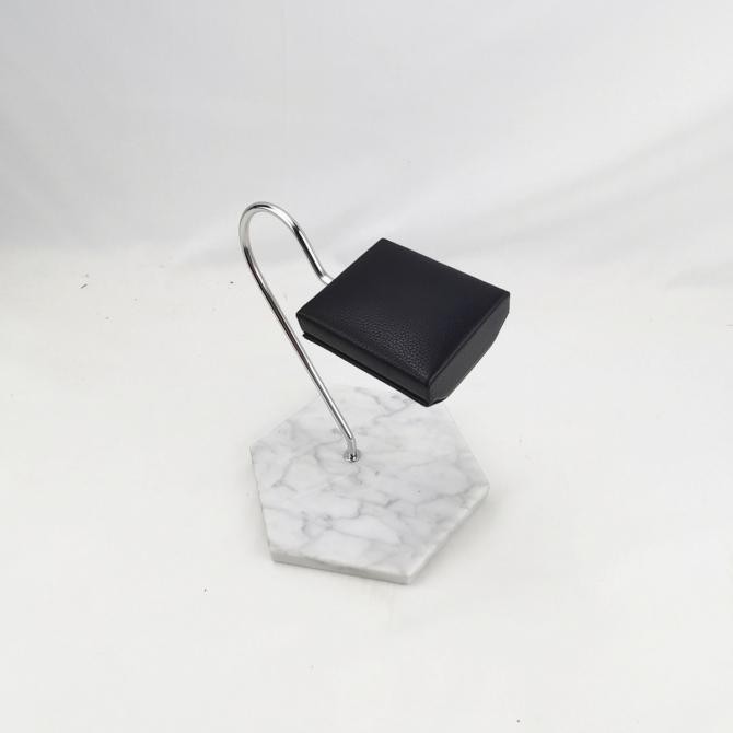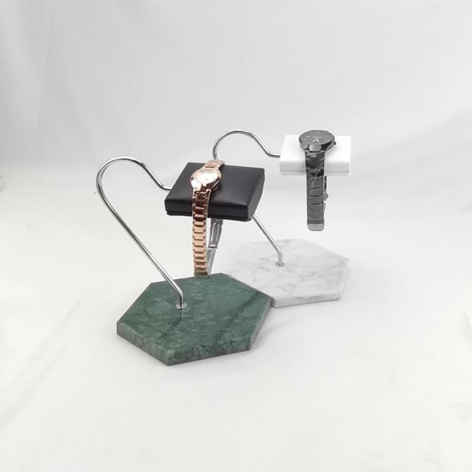 This is a watch stand with a white marble base, which is of excellent quality and has a beautiful appearance. It is made with the highest quality materials and craftsmanship, and every little detail is carefully crafted.