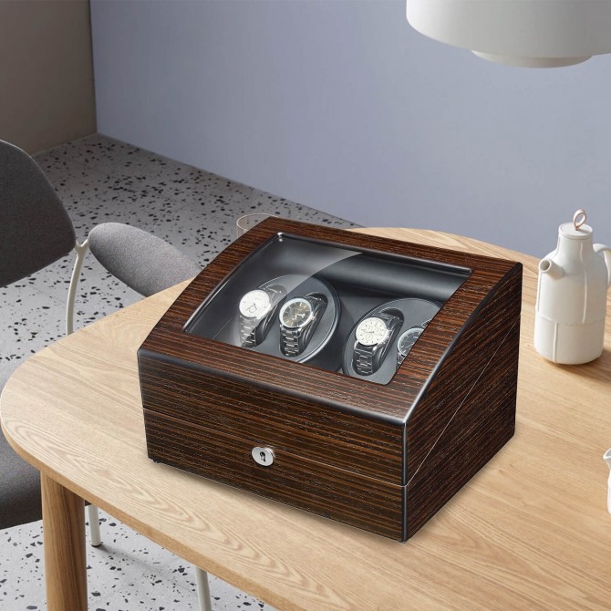 The watch winder adopts lock design not only decorate the watch winder but also protect the watch more safely.