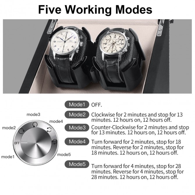 There are 5 modes to adjust the winding way that can match different brand of watches.