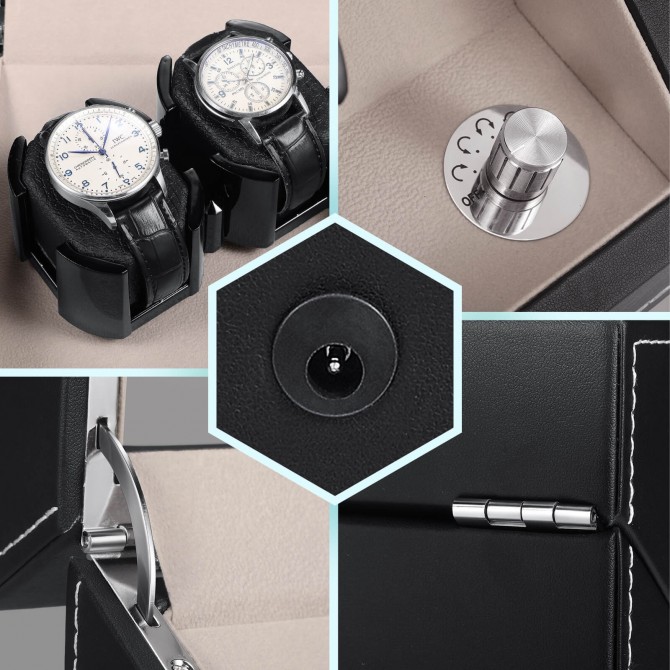 The leather watch winder comes with flexible watch pillows with a unique design fitted for different size watches, and it is super compact.