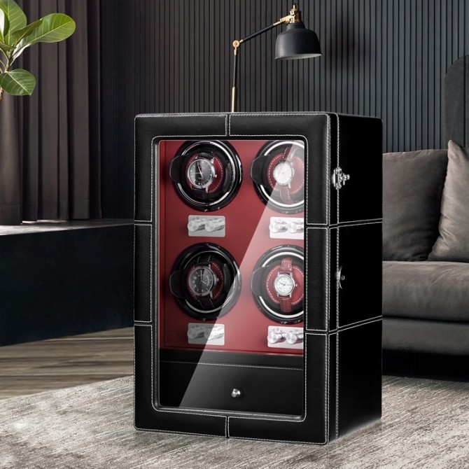 ● Large Capacity—There are 4 winder space and 4 storage space in the watch winder which can fit your needs, and the storage place in watch winder adopts drawer design which is more dustproof.