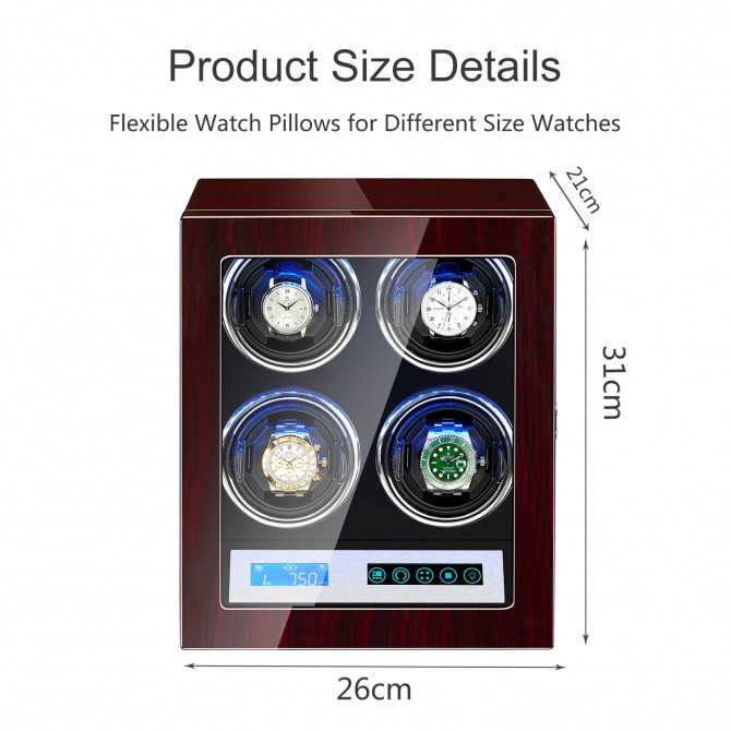 This watch winder uses high quality Japanese upgraded Mabuchi motor which is a well-known brand to make precision motors. These motors control noise under 10db that even though you put it in your bedroom it can also offer you an extremely quiet experience.