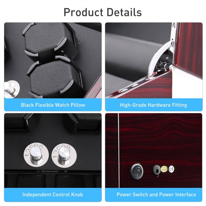 This watch winder uses high quality Japanese upgraded Mabuchi motor which is a well-known brand to make precision motors. These motors control noise under 10db that even though you put it in your bedroom it can also offer you an extremely quiet experience.