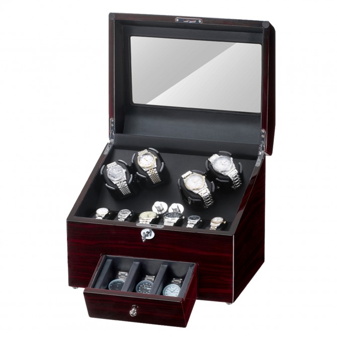 ● Large Capacity—There are 4 winder space and 9 storage space in the watch winder which can fit your needs, and the watch adopts drawer design which is more dustproof.