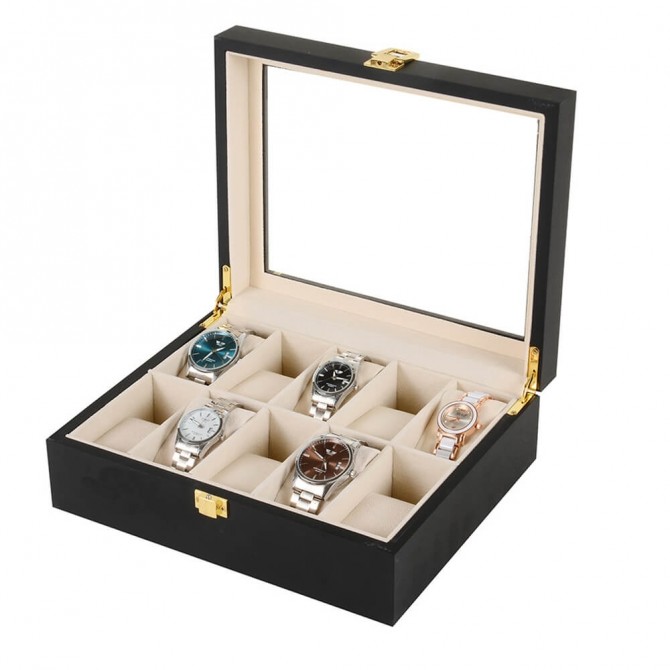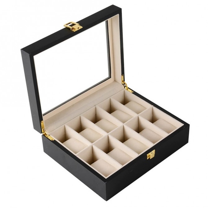 Give your watches a home they deserve with this SOLID, SLEEK watch box. Made of sturdy wooden structure, MDF and velvet. This mens watch organizer is exquisite, gorgeous and attractive. And it is easy to clean. You just need to wipe the display case organizer with cloth.