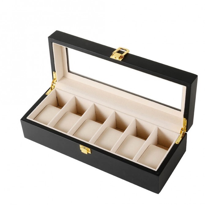 Give your watches a home they deserve with this SOLID, SLEEK watch box. Made of sturdy wooden structure, MDF and velvet. This mens watch organizer is exquisite, gorgeous and attractive. And it is easy to clean. You just need to wipe the display case organizer with cloth.